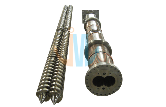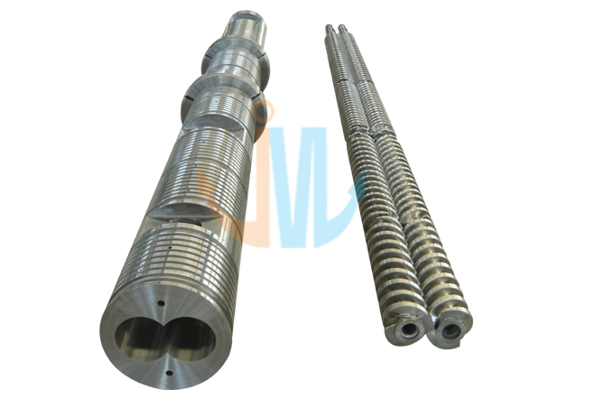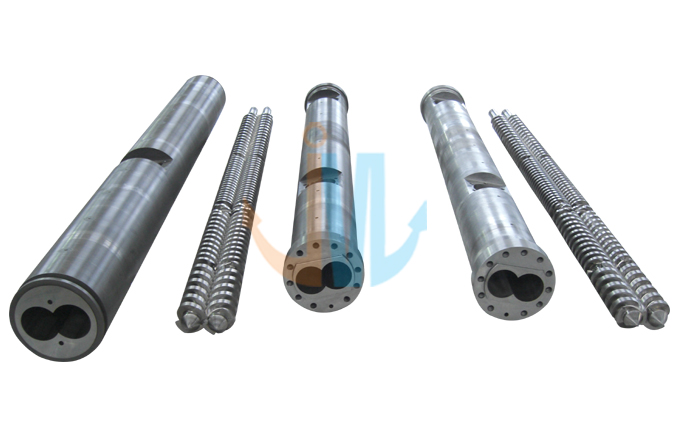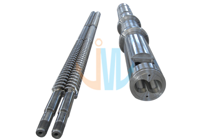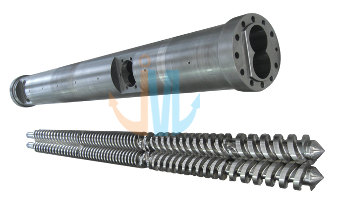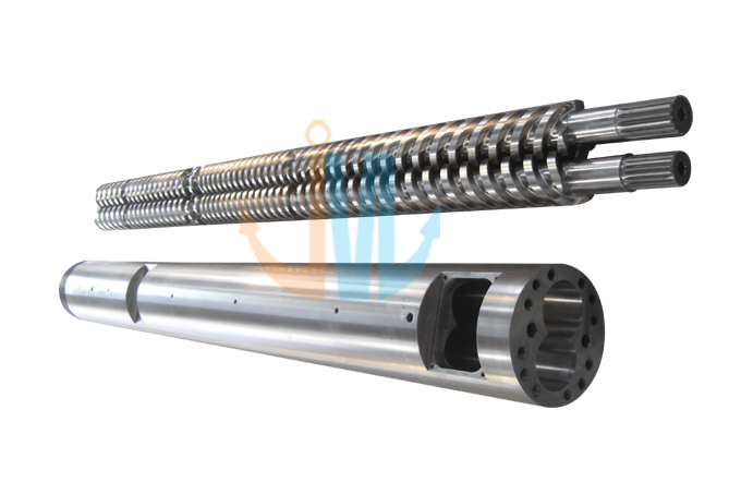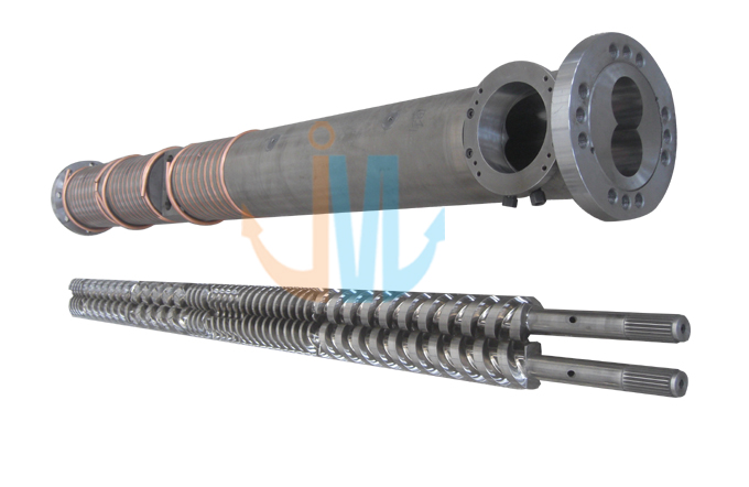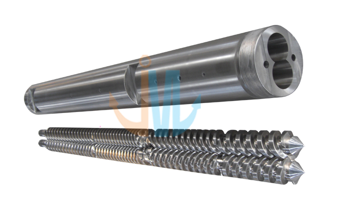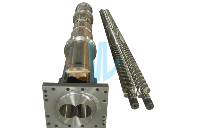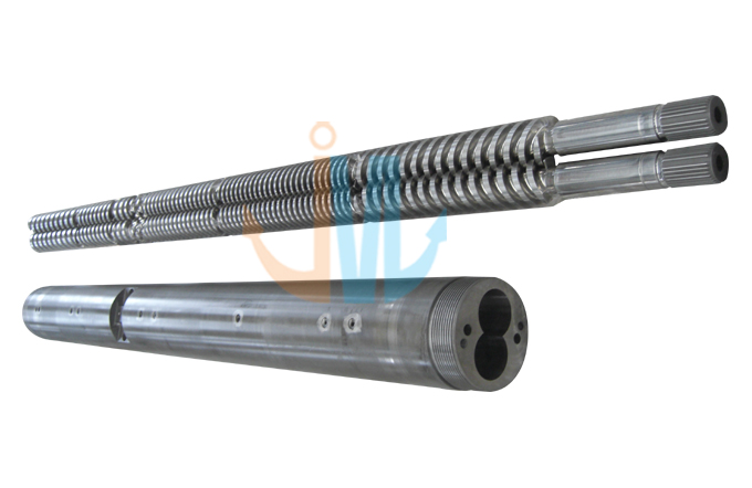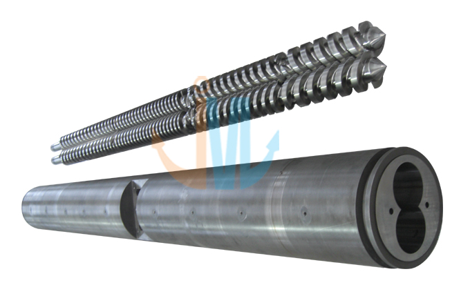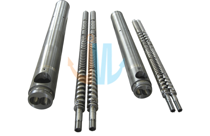 Parallel twin screw barrel Diameter: φ45-φ200 (according to the demands of customers) L/D ratio:16-35 The compression ratio of screws can be designed according to different products and mixtures. Technical Parameter: Hardness After Hardening & Tempering:HB280-320 Nitrided hardness: HV850-1000 Nitrided layer depth:0.50-0.80mm Nitrided brittleness: ≤ Grade Ⅱ Surface roughness: Ra 0.4μm Linearity of screw: 0.015mm Bimetallic layer depth: ≥2mm Bimetallic hardness: HRC60-72 Hard-chrome plating hardness after nitriding: ≥900HV Chrome-plating layer depth: 0.025-0.10mm