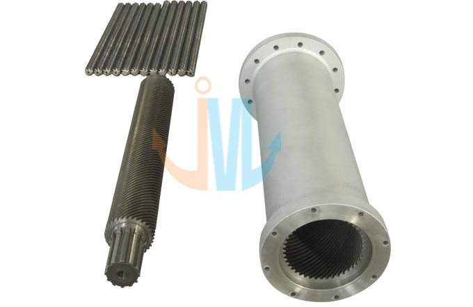 Planetary extruder is a single screw extruder with a multi-screw extruder combination of its feed section is equivalent to a single-screw extruder feed zone. The extruder is the most important part of the planetary kneading segments, mainly from the polymer melt kneading the role. The segment consists of a main screw, the certain root planetary screw and the wall of the create helical barrel configuration, the gap between the underside of the teeth of the planetary screw and barrel is 0.2 ~ 0.4mm, the diameter of the root of the number of the planetary screw planetary into proportional to ships having 6 to 18 root.